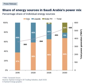 This results in operational costs that are six to eight times lower per kilowatt-hour. These cost advantages underpin Saudi Arabia’s strategy to replace crude with gas in its power mix, enabling the kingdom to redirect more crude toward export markets and strengthen fiscal returns.